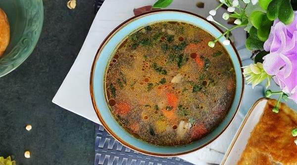 Суп с домашней приготовленной лапшой, с добавлением курицы