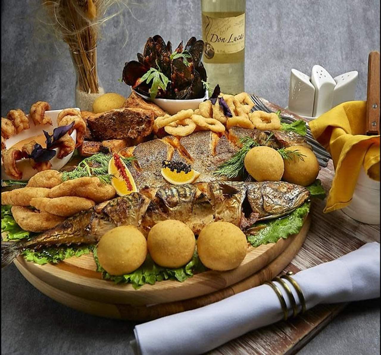 Гарлики-6шт, мини тако-4шт, наггетсы в кисло сладком соусе, мини чебуреки с курицей-6шт, сырные шарики 6шт, сырный соус, соус сальса, соус тар-тар.