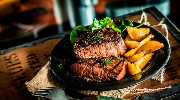 Сочный стейк с запеченной кукурузой и соусом Демиглас