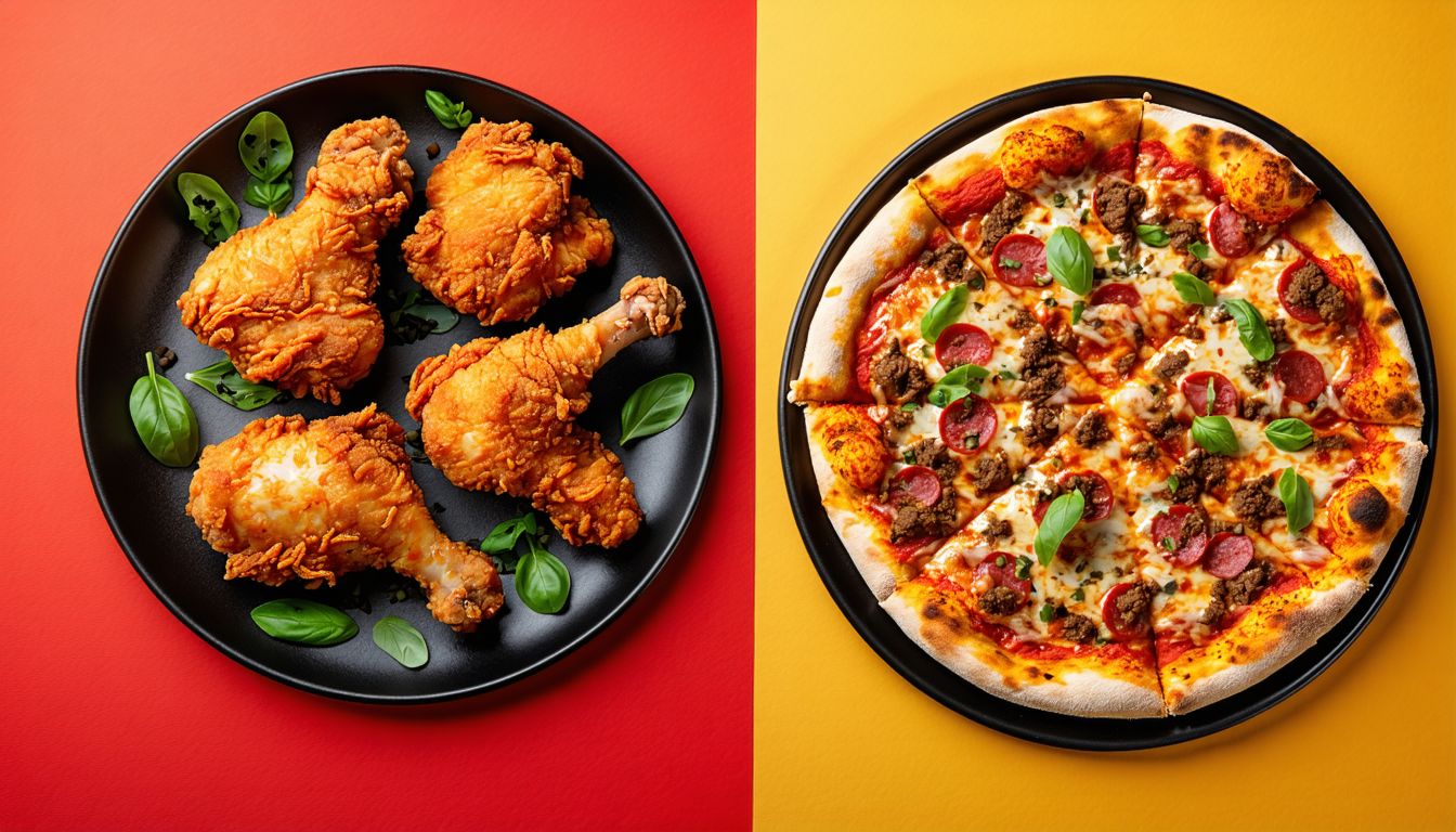 Сытная пицца с кусочками куриного филе и ароматными специями.