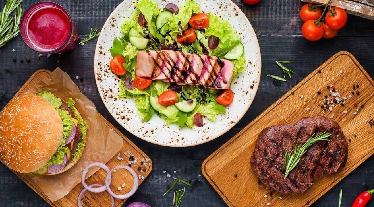 яйца куриные, колбаса халяль, тост хлеб, микс салат, помидоры черри, огурцы
