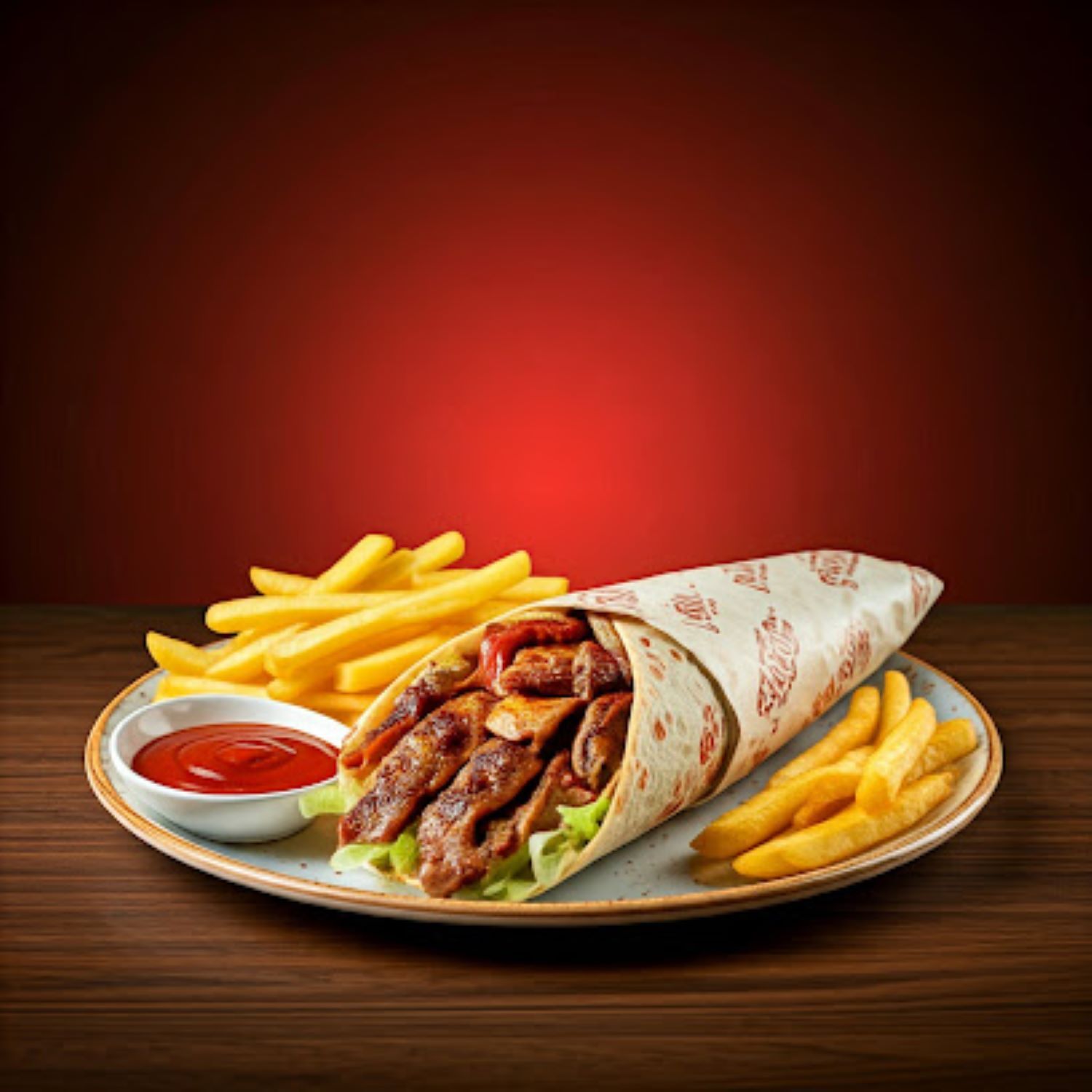 Kebab clasic + porție de cartofi pai + Coca Cola 330ml