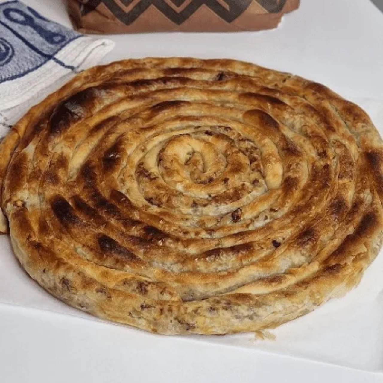200g Burek s mesom, sočan, začinjen i hrskav.