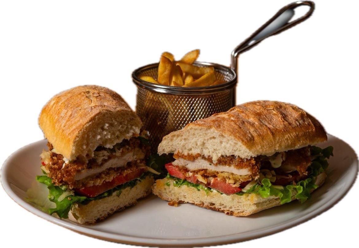 Pileća šunka / svinjska ,sir,pavlaka,zelena salata,pomfrit