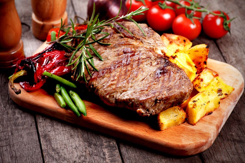 Biftek, sos od šampinjona, pomfrit