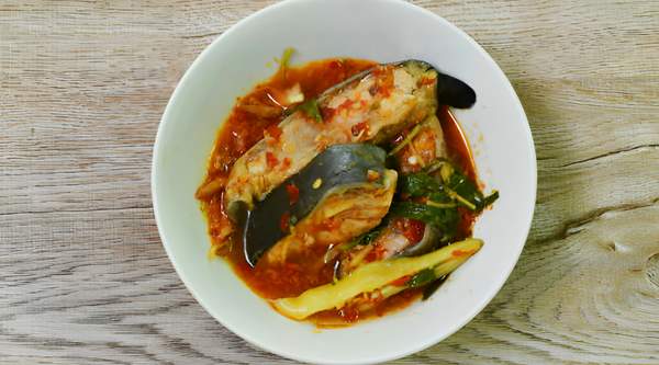 One portion of dish made with grinded melon, red oil, veggies, seasoning, etc. Users have to buy protein and swallow