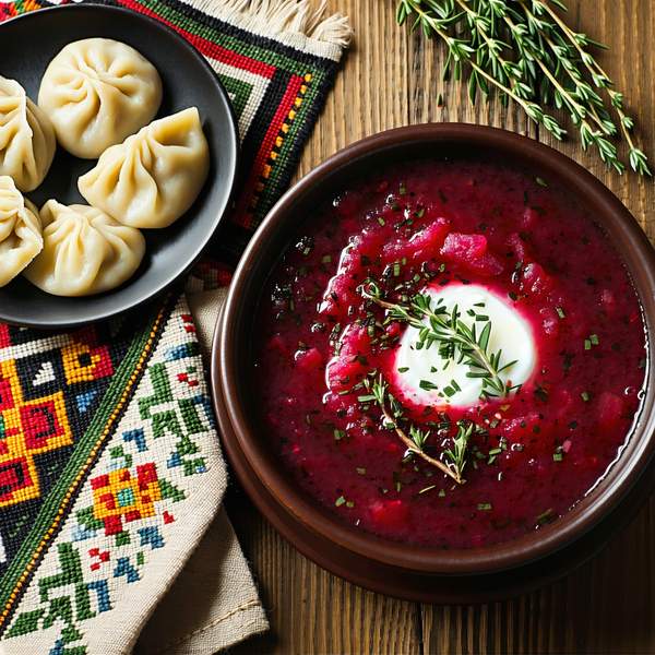 Żeberka wieprzowe, buraki czerwone, ziemniaki, kapusta, fasola, warzywa, śmietana