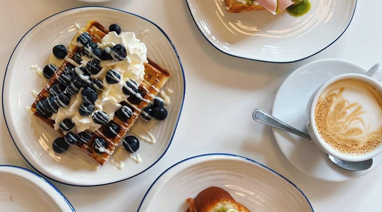 Gofr z jajkiem sadzonym, bekonem, sosem holenderskim, lekka sałatka winegret
