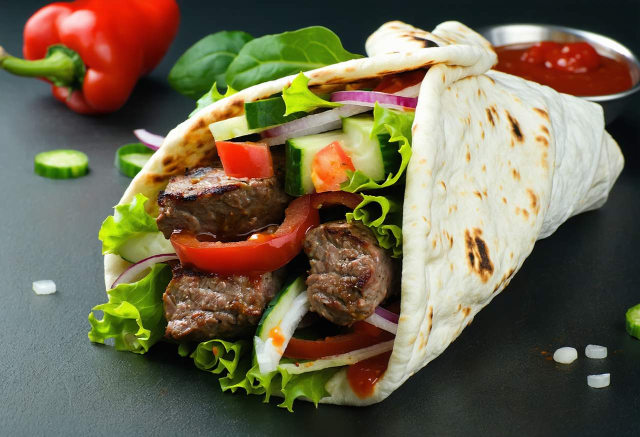 Pita, surówka, mięso, sos. Zdjęcie poglądowe