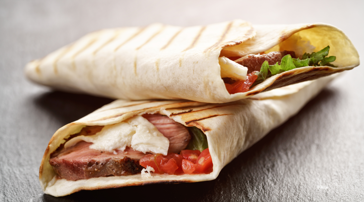 (mięso, tortilla, frytki, ryż, sos, ser feta , sałatka)