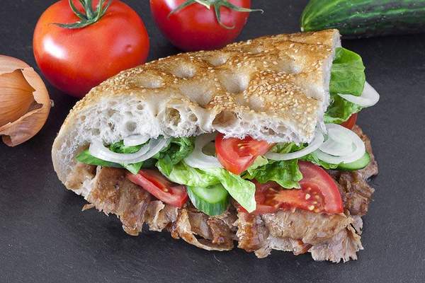 turecki chleb mięso kebap, surówki sos