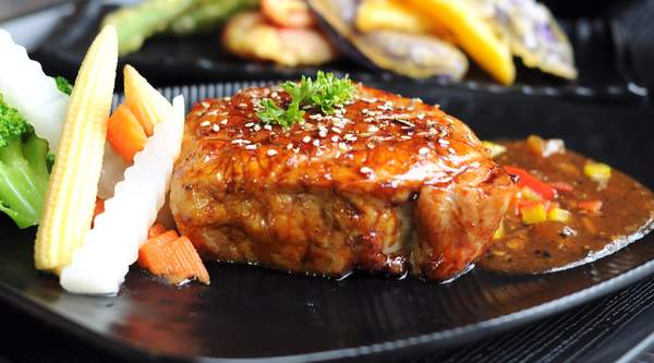 grillowana karkówka 160g podawana z dodatkami do wyboru. Porcja 400g