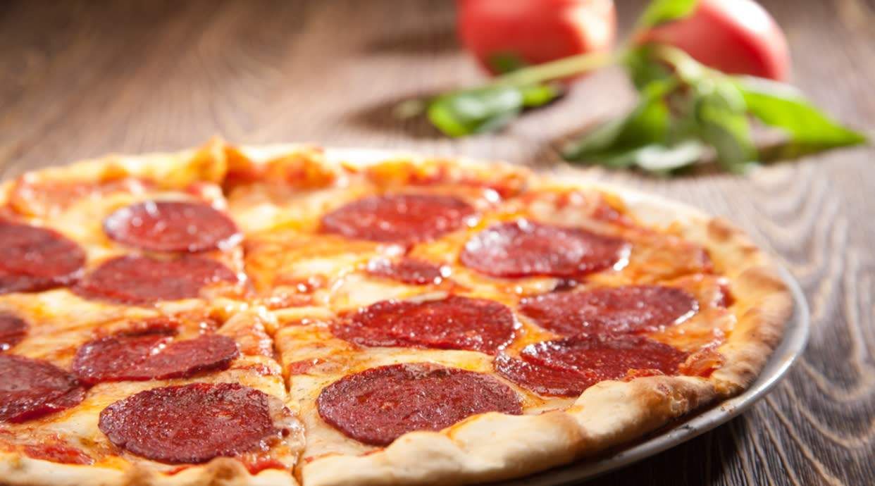 Ser Mozzarella, Szynka wędzona, Salami Napoli, Pomidory San Marzano (Sos), Oregano, Pieczarki, Cebula czerwona