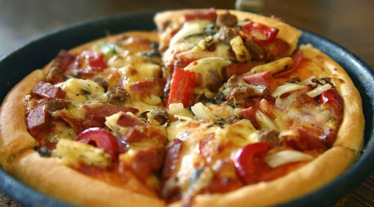 ser, szynka, kiełbasa, boczek, papryka, pieczarki