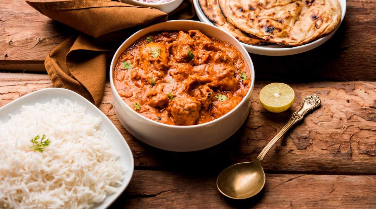 Sos pomidorowy ze śmietaną z dużą ilością indyjskich przypraw, w tym imbiru, czosnku, kurkumy, czerwonej chili, kolendry i kminu.