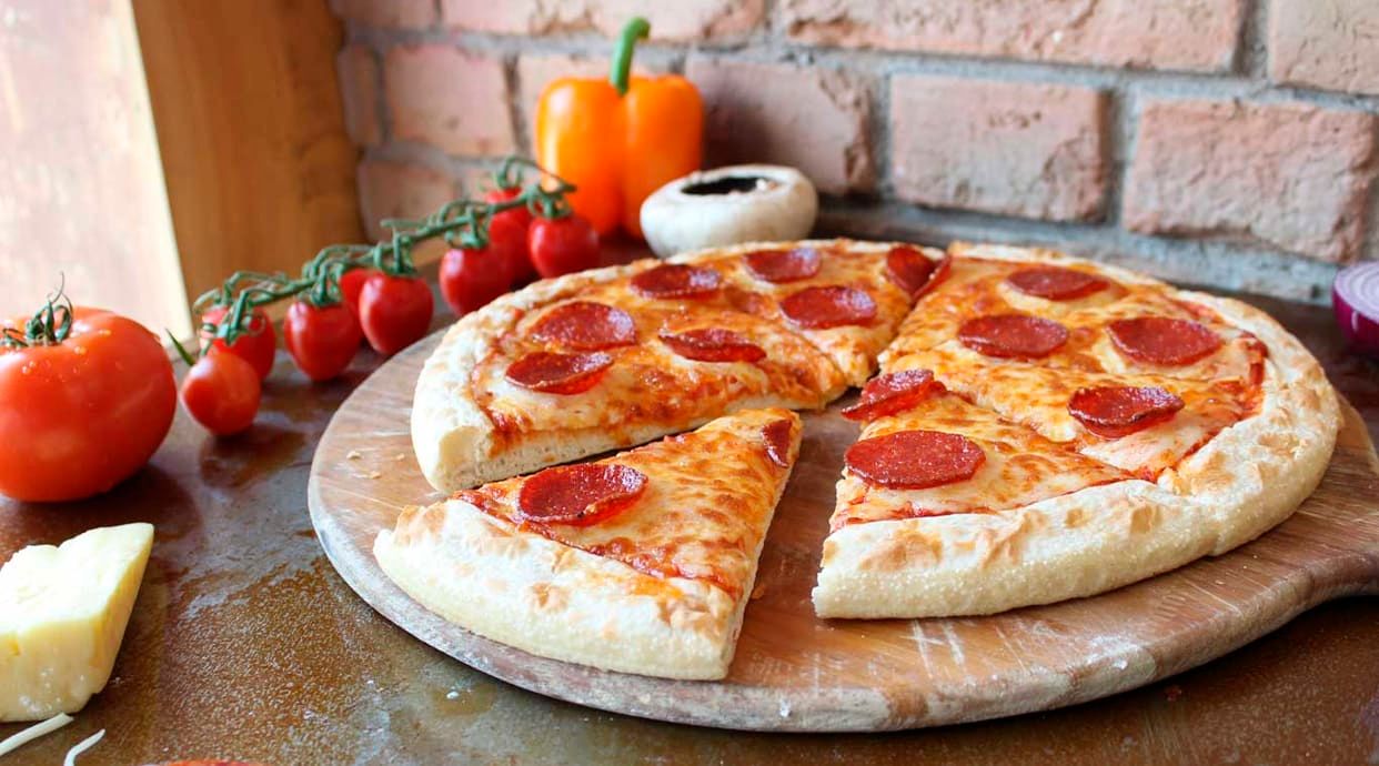 Sos Pomidorowy, Ser Mozzarella, Salami Pepperoni, Pieczarki, Czosnek Świeży, cebula