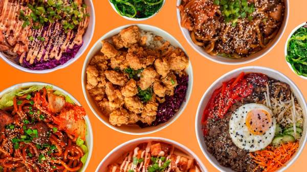 Ryż, sos gochujang, kurczak w marynacie bulgogi, kiełki fasoli mung, zielony ogórek, czerwona papryka, marchewka, grzyby shitake, sadzone jajko, sezam.