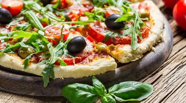 Sos de rosii, mozzarella, ciuperci, ardei, ceapa rosie, porumb, masline, oregano, ulei de masline - 500g