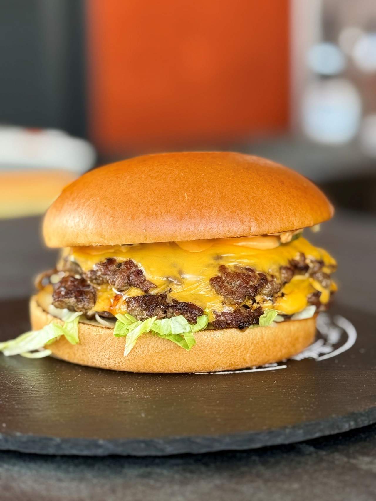 Chifla, 2 bucati carne de vita, cheddar, ceapa smash, castraveti murati, salata, sos special - 330g Alergeni: gluten, lapte, mustar, ou