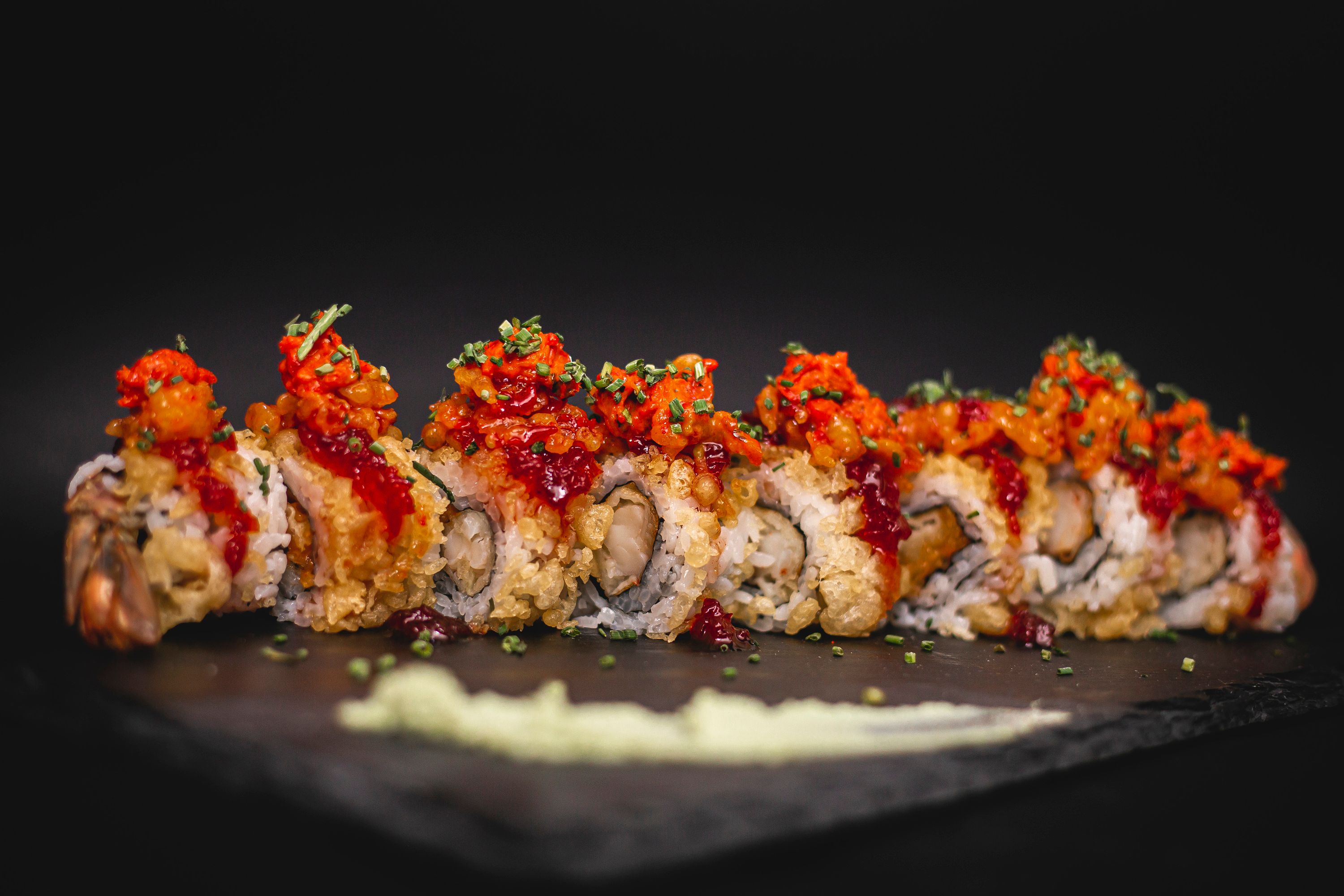 Losos, Krem sir, Losos, Krastavac, Edamame, Pohovani luk, Ljuti majonez