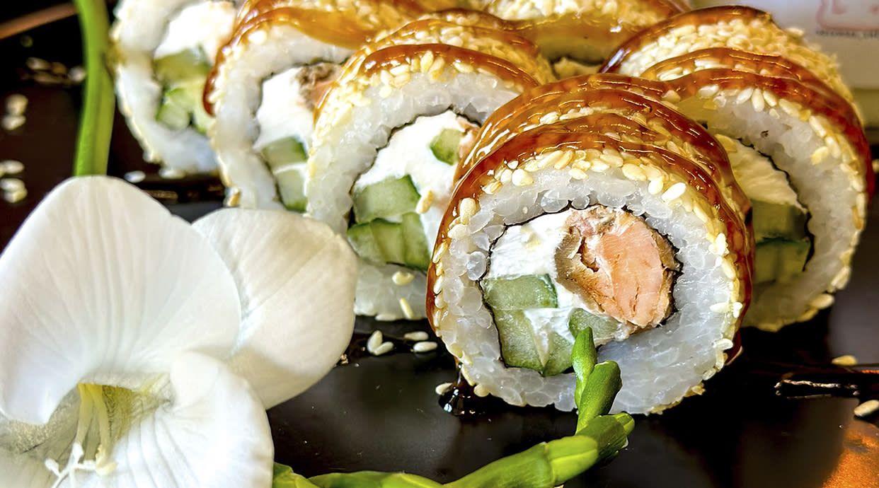 Окінава, Каліфорнія в кунжуті з крабом, Каліфорнія в ікрі з окунем, Філадельфія з лососем, Зелений дракон, Унагі