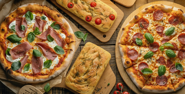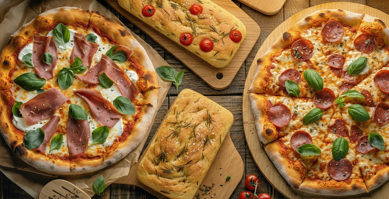 Фокача, домати, моцарела, салам Мортадела с шам фъстък - 350-400г