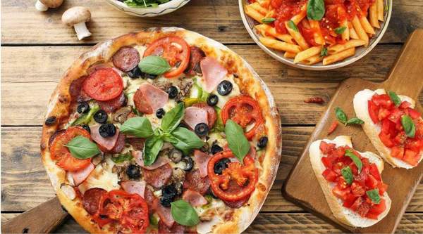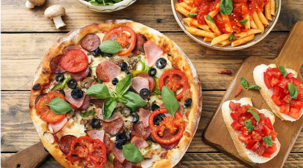Доматен сос, моцарела, шунка, гъби, риган - 500г