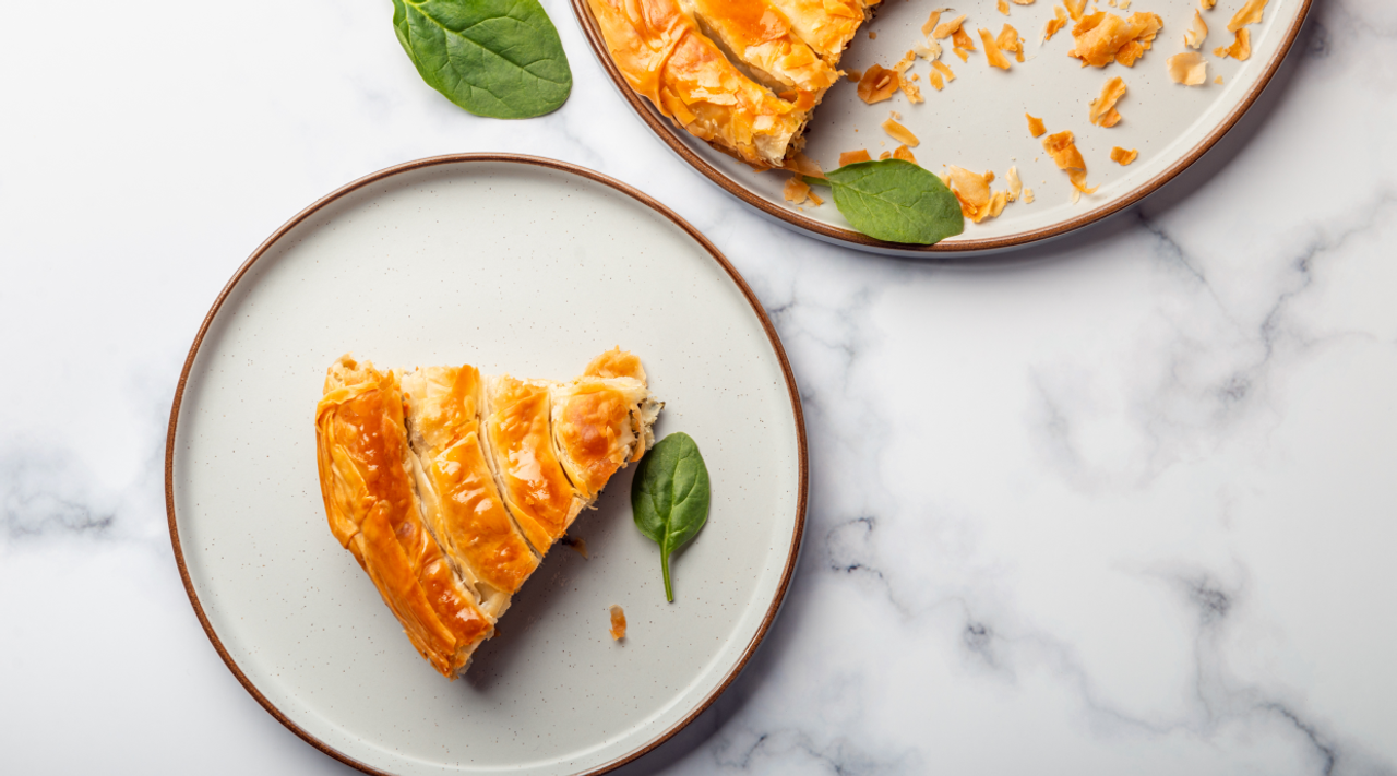 Класическа баница тесто замесено с яйца с хрупкави кори и пълнеж от сирене, изпечена до златисто.
