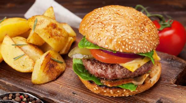 Бургер меню (бургер по избор, пържени картофки 100гр. Кока кола кен)