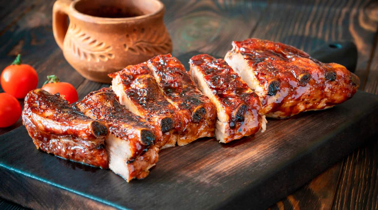Хрупкав бриош, 2бр телешко кюфте, чедър, кисели краставички, сладко от бекон с бърбън, пушена майонеза и пържени картофи - 550г