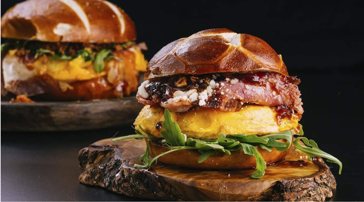 Бриош питка, телешки бургер от 100% българско месо, домат, кис. краставички, айсберг, червен лук, разтопен чедър, bad habits сос