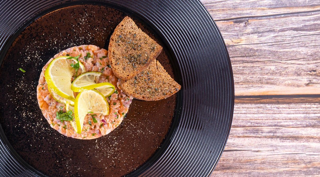 Сьомга филе с черен ориз и маслено лимонов сос (400 гр)