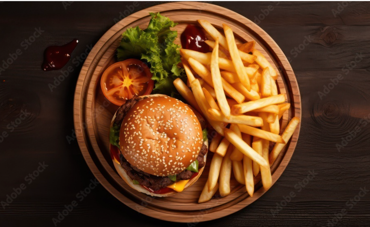 Чйзбургер,гарнитура от хрупкави Пресни пържени картофи картофи 2бр американски палачинки с Нутела ,1бр ПЕПСИ КЕН