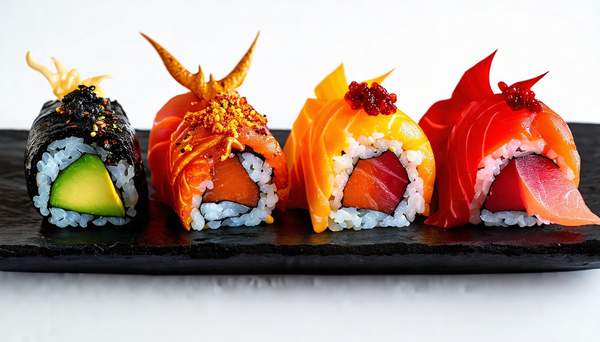 Ориз, нори, филаделфия, сьомга, краставица, червен хайвер, масаго