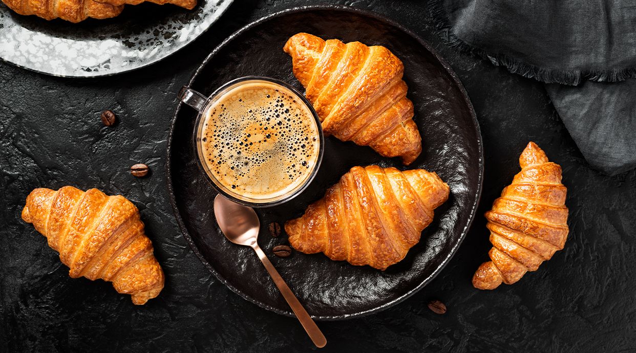 Disfruta de nuestro croissant de mantequilla, dorado y crujiente por fuera, tierno y lleno de sabor por dentro
