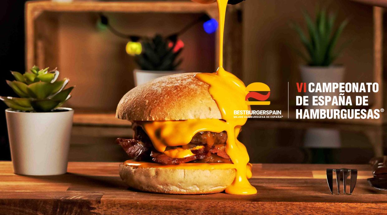 Pan artesano, salsa cheddar, 2 hamburguesas de vacuno (120 g.), queso cheddar, bacon y salsa cheddar