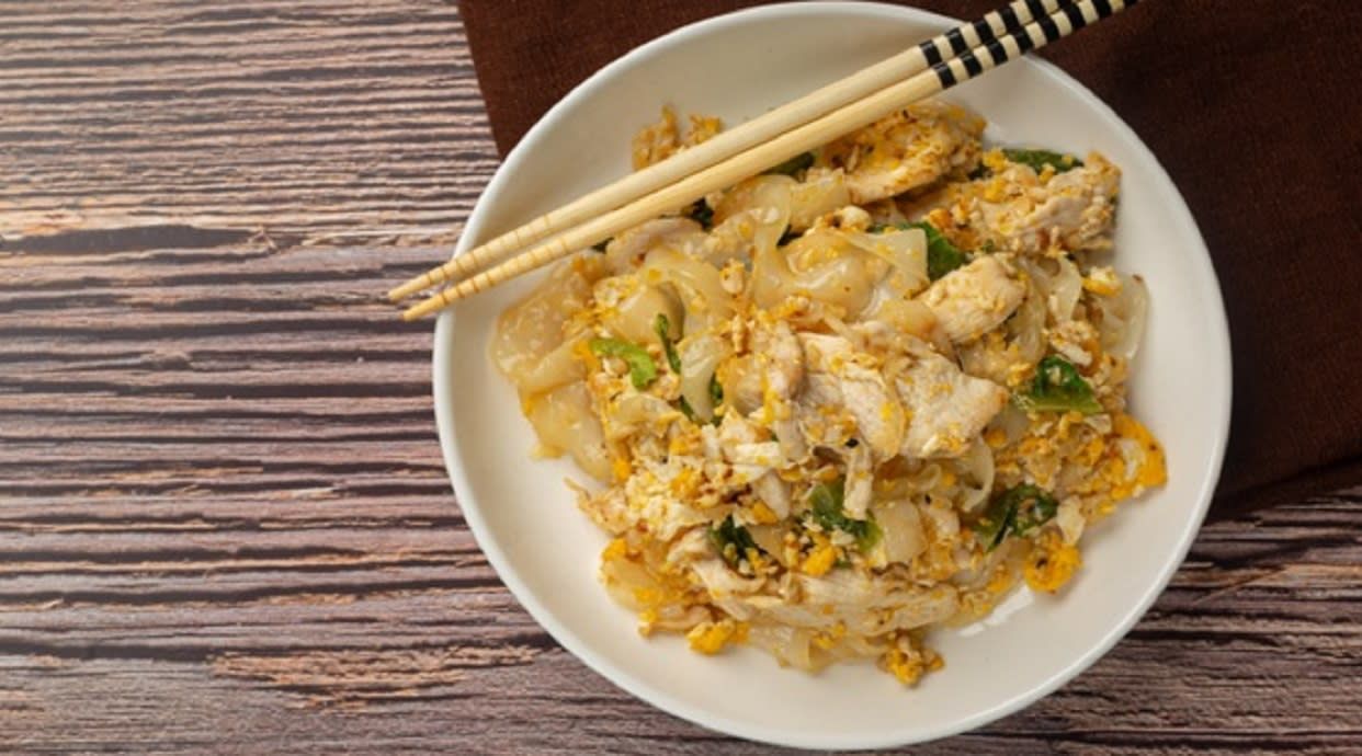 tallarines fritos con pollo