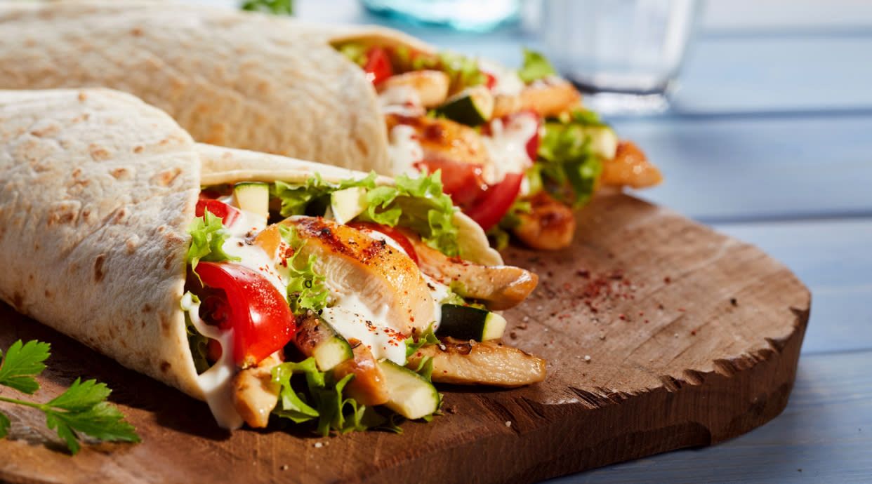 Pan de Durum ,bandidos de pollo y ensalada y salsa especial de Galaxy kebab .