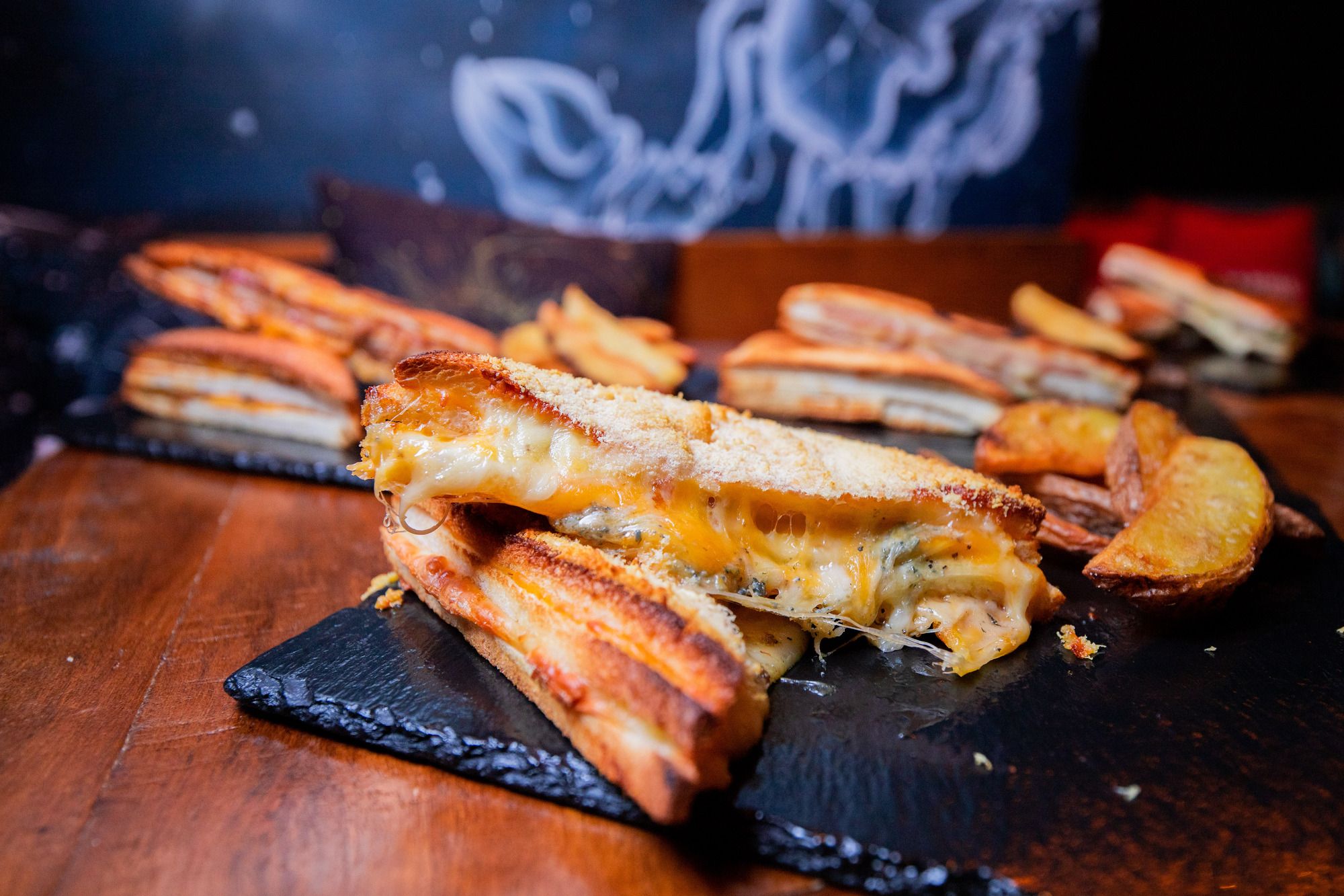 Una combinación cremosa de quesos fundidos envuelta en una cobertura crujiente de parmesano DOP, gratinado al punto justo. Todo acompañado de patatas fritas.