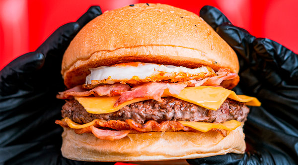 Triple cheddar, doble bacon y huevo frito