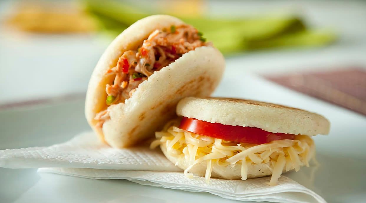 Súper crujientes, de masa de maíz rellenas de pollo mechado (pollo guisado deshilachado), servidas con salsa tártara (mayonesa de ajo y cilantro), típicas de Venezuela