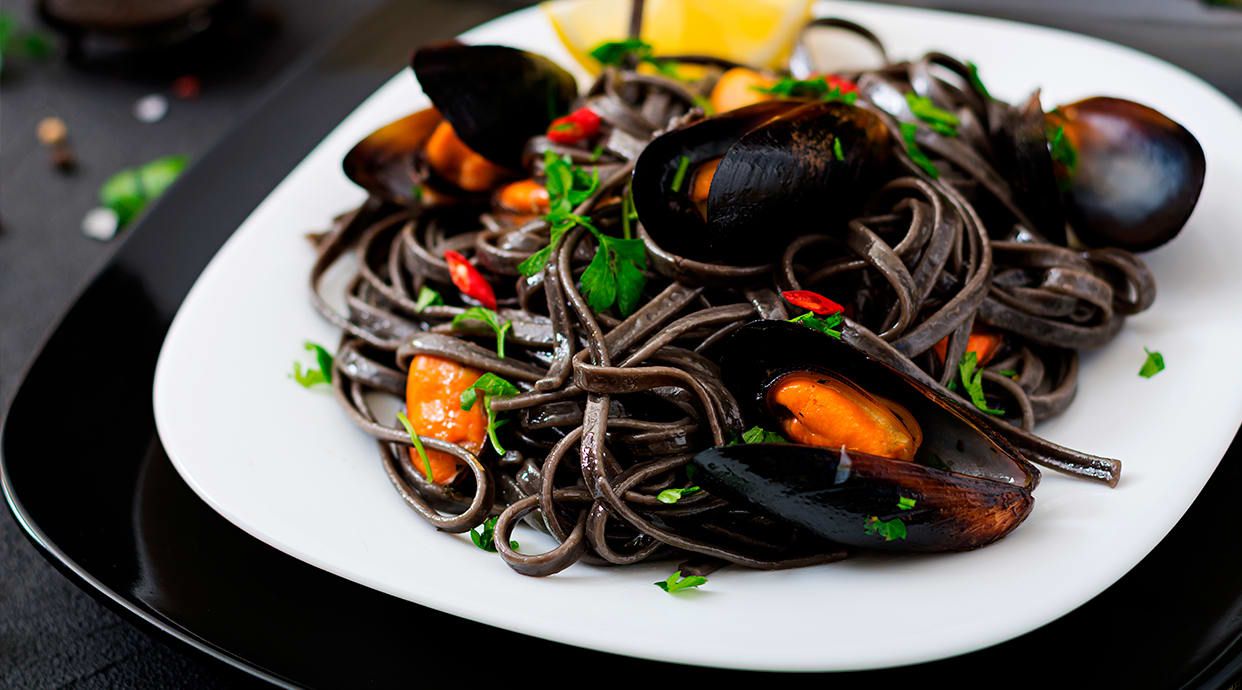 Spaghetto gordo con almejas y botarga de mujól