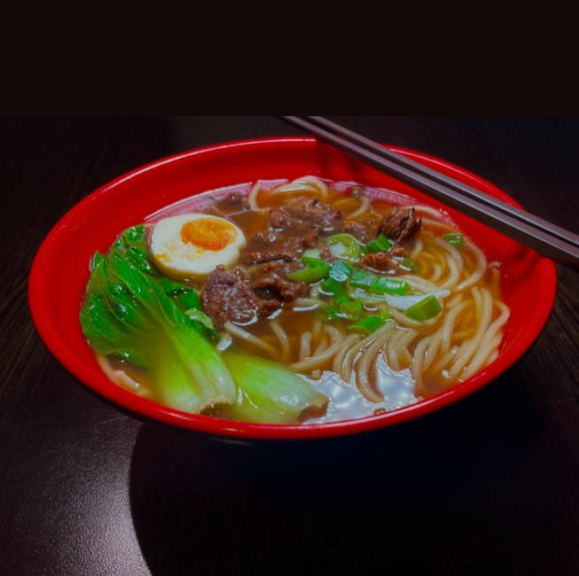 Ramen al estilo Wenzhou del sur de China, receta original. Caldo a base de ternera acompañado de fideos, bok choy, huevo duro y trozos de ternera