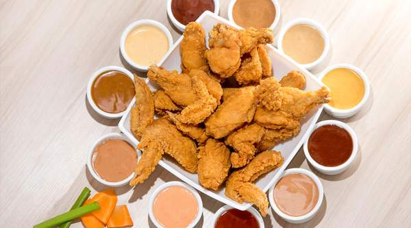 3 Alitas de pollo tiernas y crujientes acompañadas de una salsa a elegir