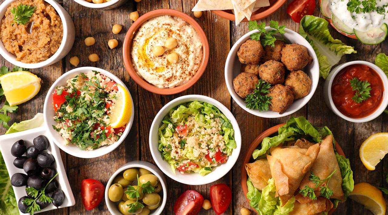 Hummus, mutabal, falafel y arayes de mohamara