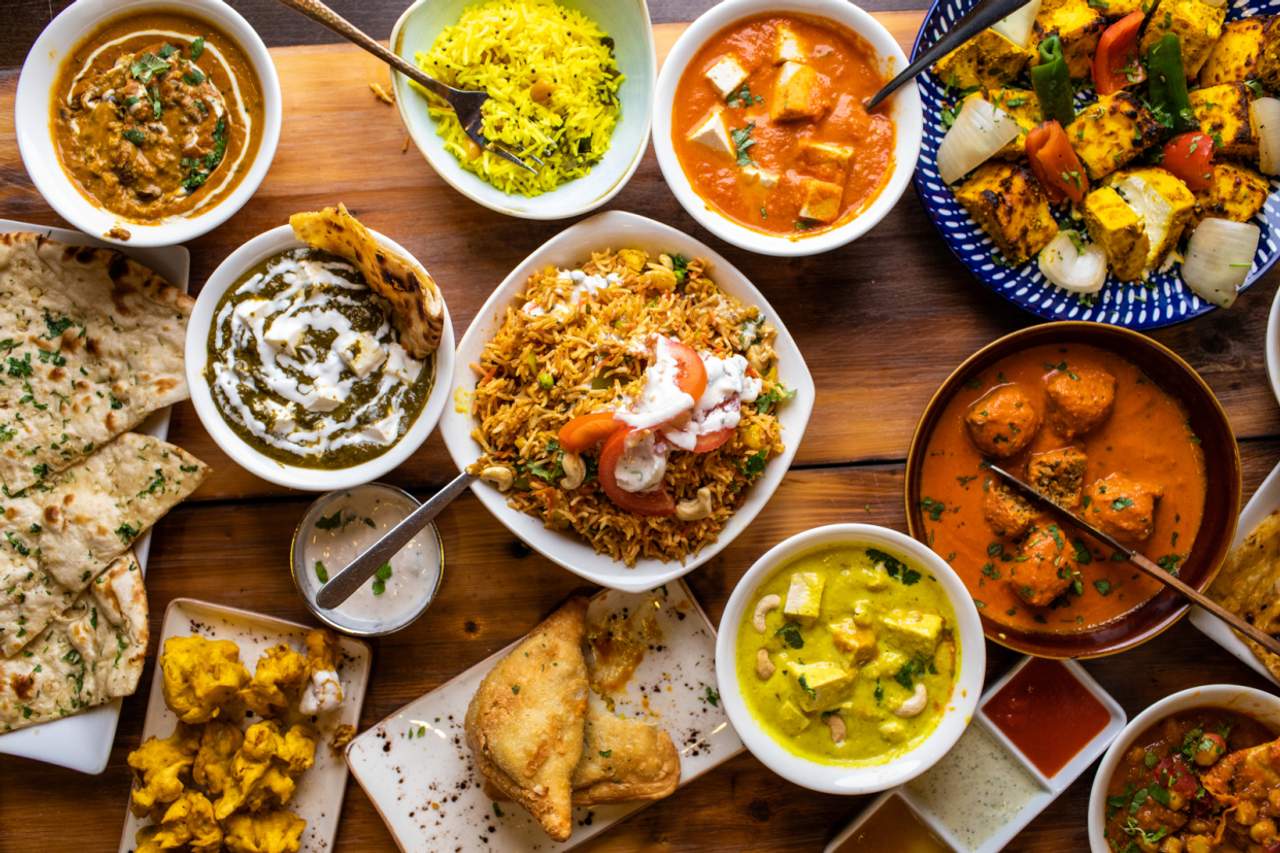 A elegir: 2 Entrantes + 1 Curry + 1 Tandoor + 2 Acompañamientos