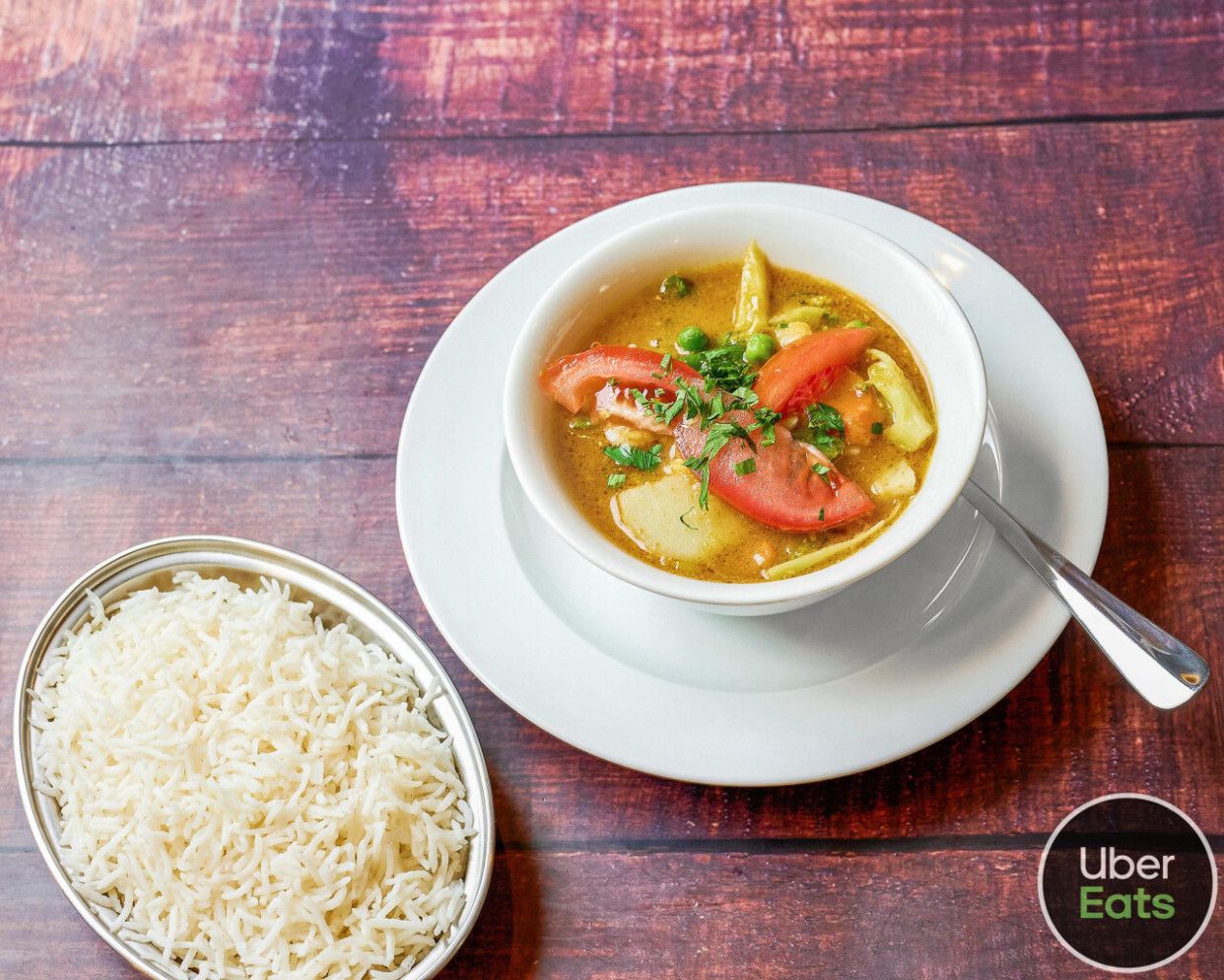 Verdura al curry servido con Arroz Basmati