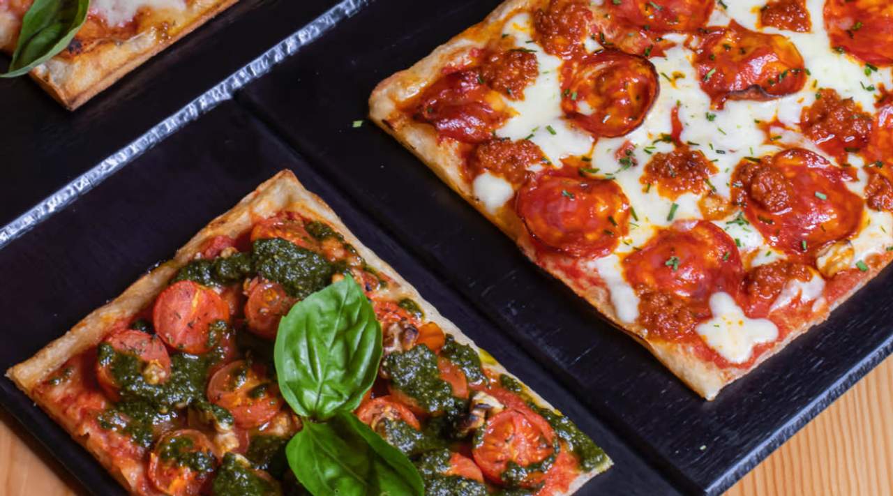 Salsa de tomate, Pesto vegano, Tomate cherry y Nueces.