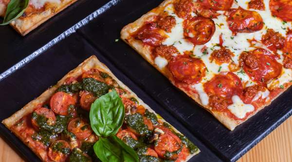 Salsa de tomate, Mozzarella, Provola, Gorgonzola y Parmesano.