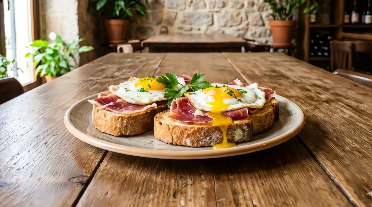 Tostada de jamón y huevo